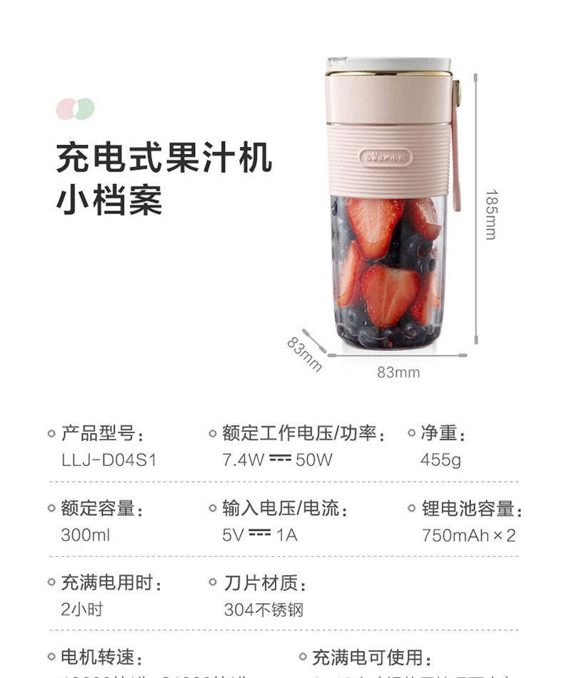 小熊 (Bear)LLJ-D04S1料理机300ml